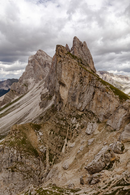 Rougher, drier, and perhaps less known than their Swiss brethren, the Italian Dolomites are no less spectacular. Around every corner of the road lies a scene deserving of a magazine page. Thunder comes in the afternoon, and the sun shows when it wishes. Clouds gather on rocky spires reaching towards heaven, perfect fields of green stretch in the afternoon sun, and alpine inns and huttes provide respite from summer showers, hunger, and thirst. There are no bad photos to be had in the Italian Dolomites.